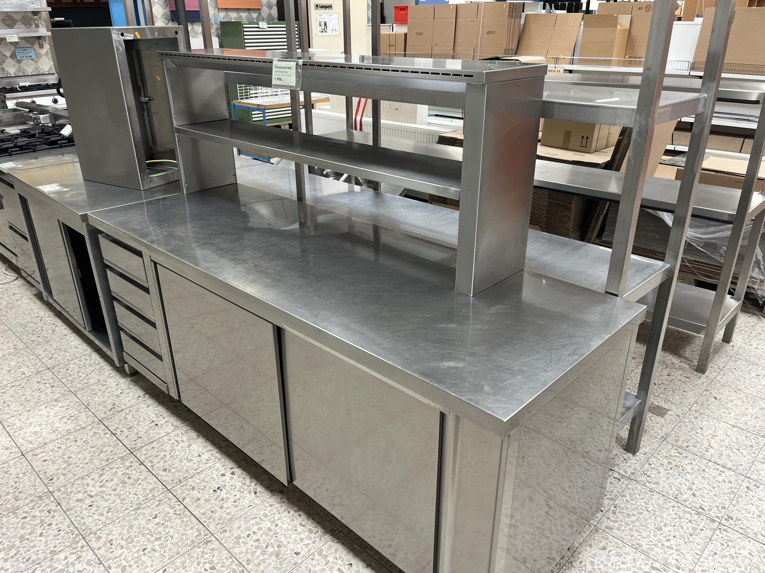 Sie befinden sich hier: Startseite1 / Edelstahl Kücheneinrichtung, Regale, Hängeregale, Gasherde, Fritter, Grillplatte, Anrichten, usw., gebraucht2 / IMG_8474