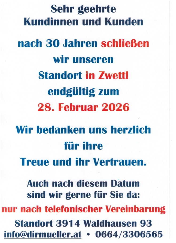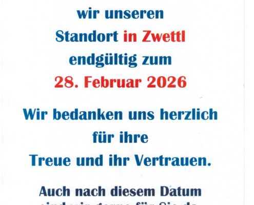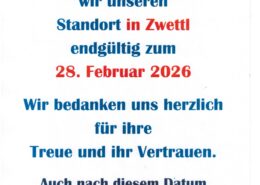 nach 30 Jahren schließen wir unseren Standort in Zwettl